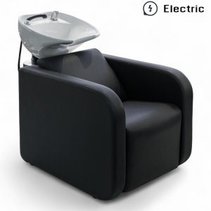 HAIRDRESSER’S CHAIR | WAVE-E.MG | BLACK LEATHERETTE WITH ELECTRIC LEG LIFT