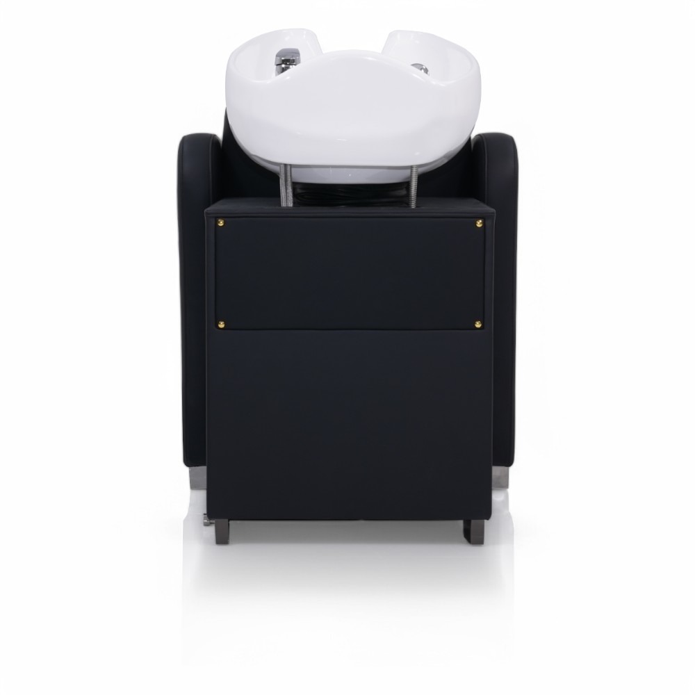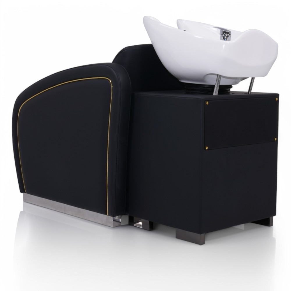 Il lavatesta HATI.NE è la soluzione ideale per i saloni di parrucchieri che cercano un design elegante e funzionale. La similpelle nera resistente si abbina a un’imbottitura confortevole, garantendo un supporto ottimale per la testa e il collo dei clienti. Il bacino profondo è progettato per evitare schizzi, assicurando un’esperienza di lavaggio rilassante. La struttura robusta garantisce durabilità nel tempo, mentre l’estetica moderna, con le finiture oro, si integra perfettamente in ogni salone. Alza gambe manuale.