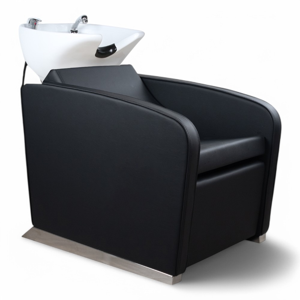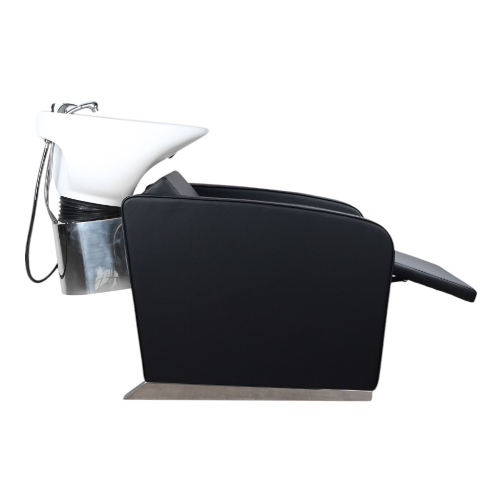 Il lavatesta METIS, rivestito in similpelle nera, è progettato per garantire il massimo comfort e praticità. Dotato di un sistema alza gambe elettrico, permette ai clienti di distendersi comodamente durante il lavaggio, offrendo un’esperienza rilassante e piacevole. La seduta ergonomica e imbottita, unita al suo design elegante e moderno, lo rende la scelta perfetta per saloni che desiderano coniugare stile, funzionalità e benessere.