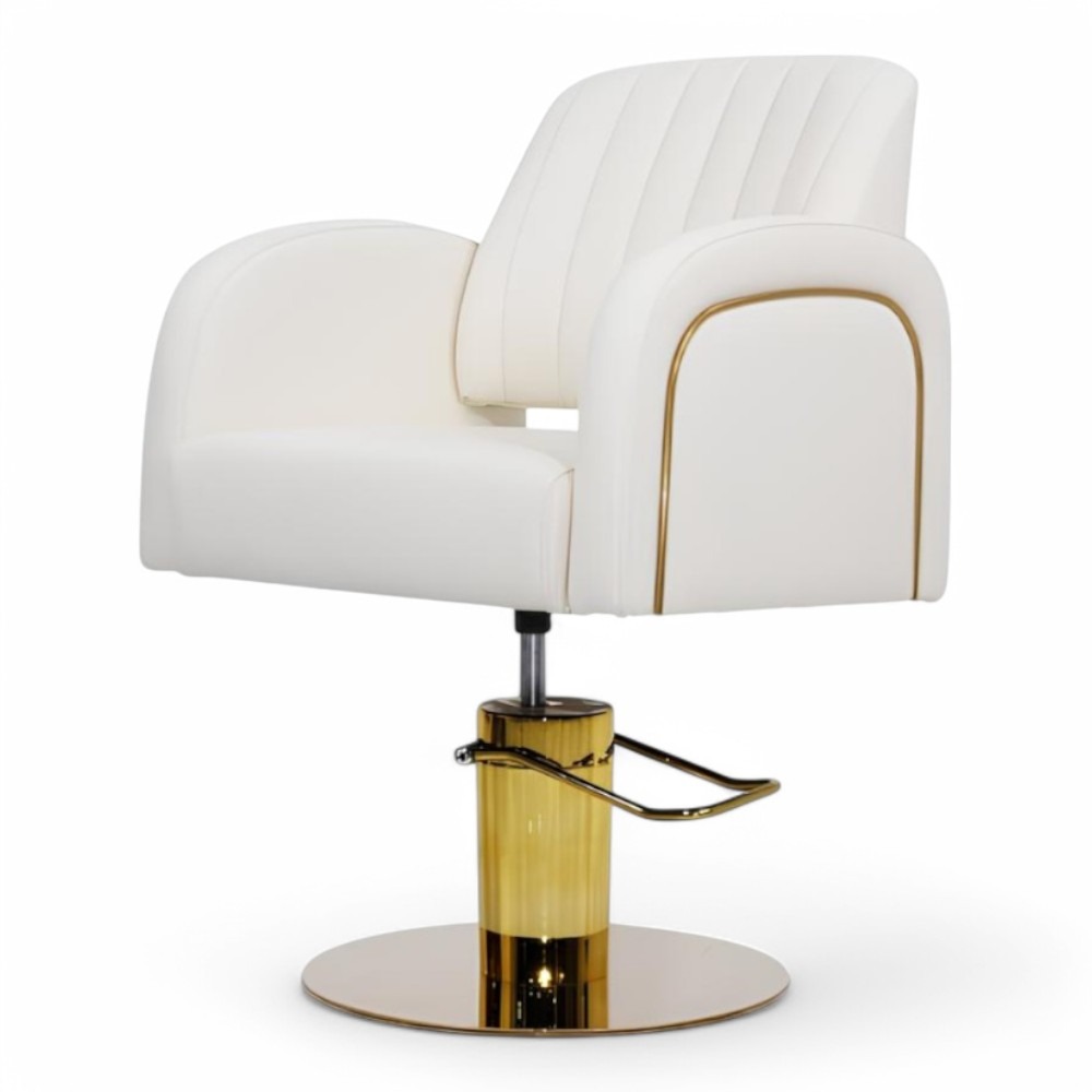 POLTRONA PARRUCCHIERE | MIRANDA.BE | SIMILPELLE BIANCO PANNA E INSERTI ORO CON POMPA IDRAULICA