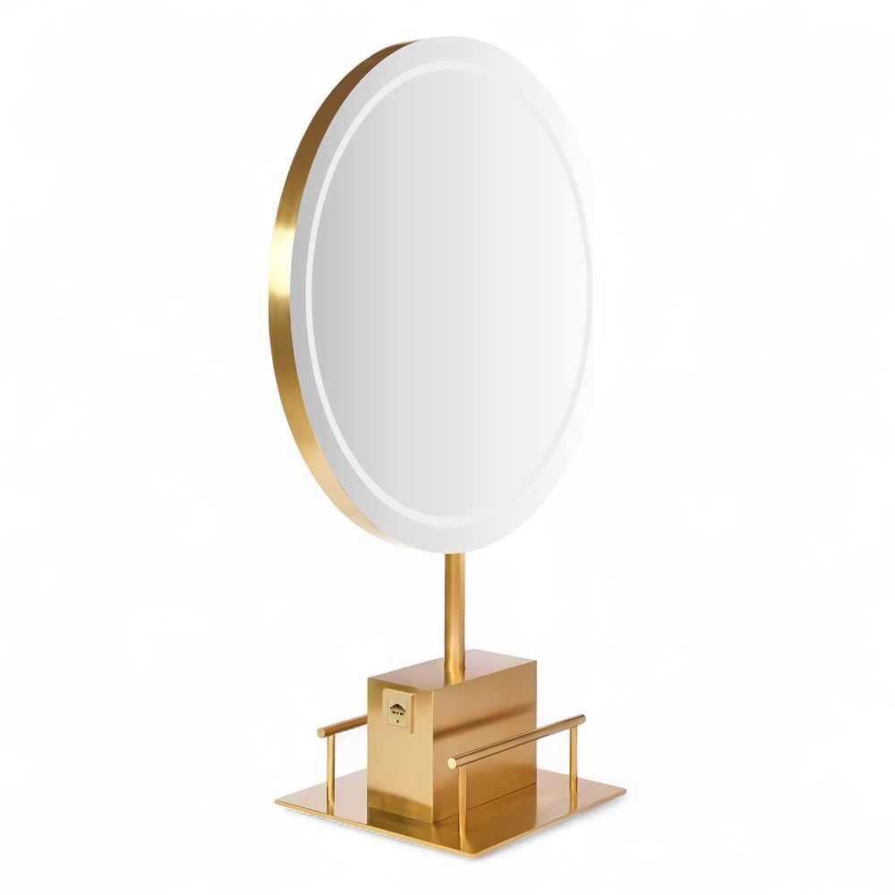 Lo specchio ALGOL.GOLD si distingue per il suo design elegante e minimalista, caratterizzato da una struttura in Oro con finitura satinata. La base stabile e il supporto integrato lo rendono funzionale e pratico per l’uso quotidiano. Ideale per saloni moderni e professionali, lo specchio ALGOL.GOLD combina estetica contemporanea e qualità, offrendo un tocco di classe a qualsiasi ambiente.