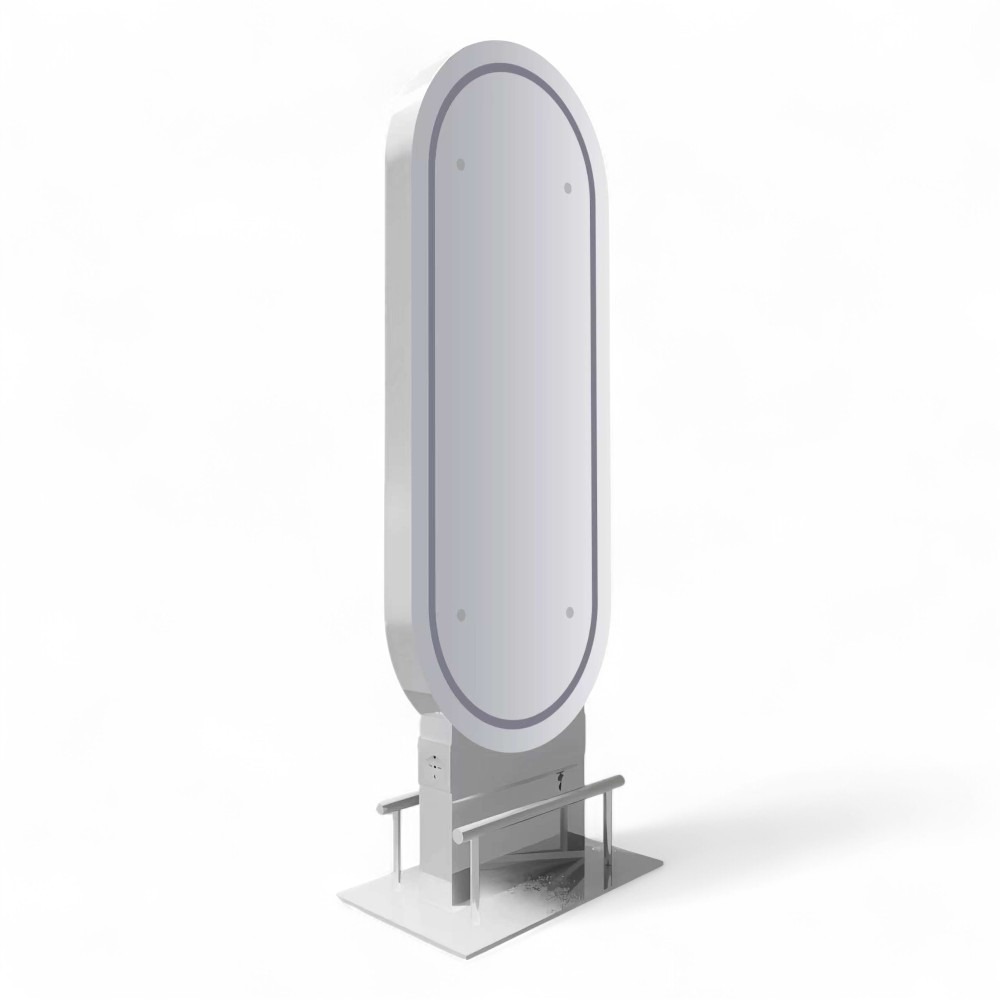 Lo specchio ALTAIR.SILVER si caratterizza per la sua forma ovale unica e il design sofisticato, con una cornice in finitura argento che dona un tocco di stile. La struttura solida e la base stabile ne garantiscono la funzionalità, mentre i dettagli eleganti lo rendono un elemento decorativo ideale per saloni moderni e professionali. Perfetto per chi desidera combinare estetica e praticità, lo specchio ALTAIR.SILVER aggiunge stile a qualsiasi ambiente.