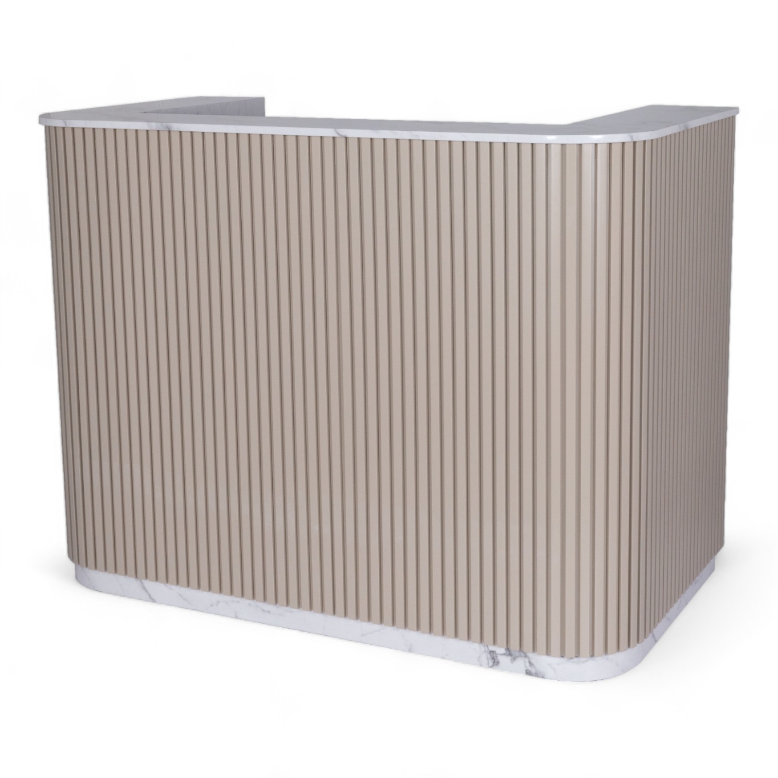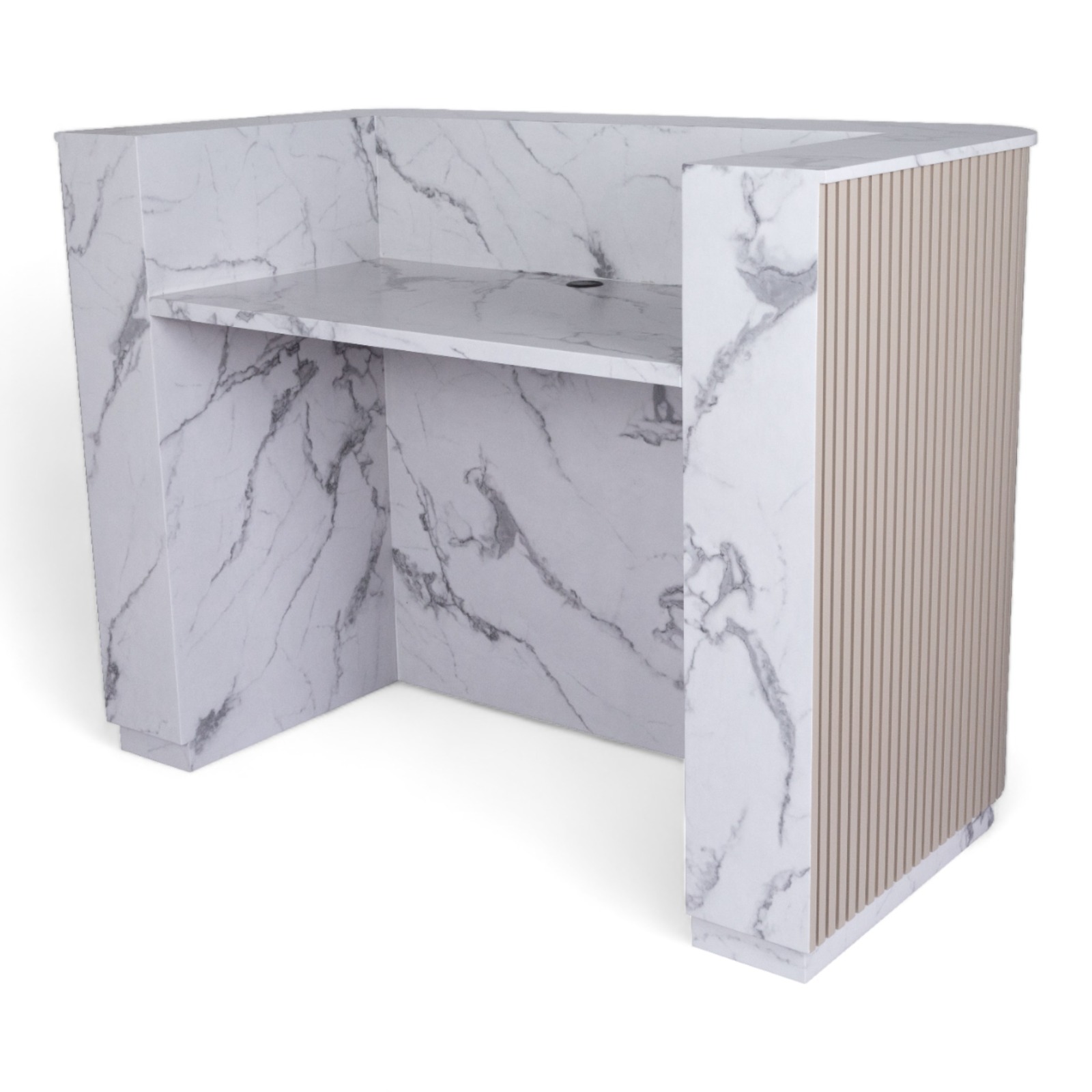 La reception TERBIO unisce legno e marmo per creare un design esclusivo e lussuoso. Perfetta per saloni che puntano a un’immagine moderna e di alta classe, questa reception offre non solo funzionalità ma anche un tocco di eleganza, grazie alla combinazione di materiali pregiati.